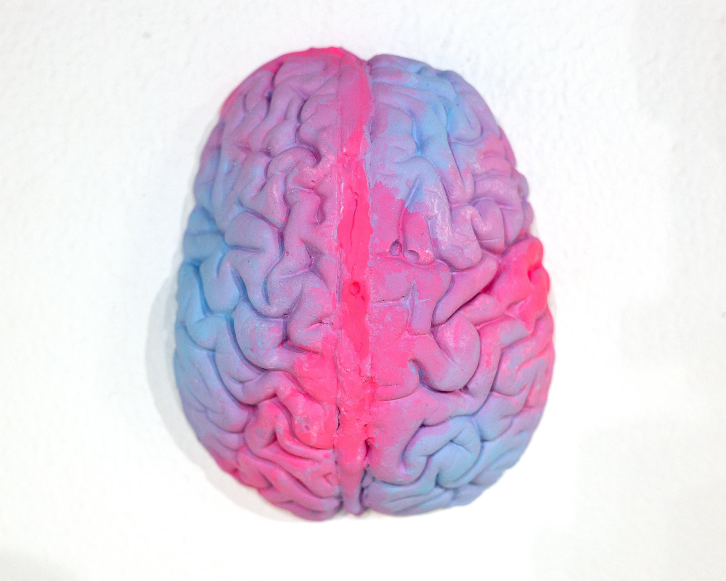 Plaster, acrylic paint, spray paint (clear coat), and cigarette